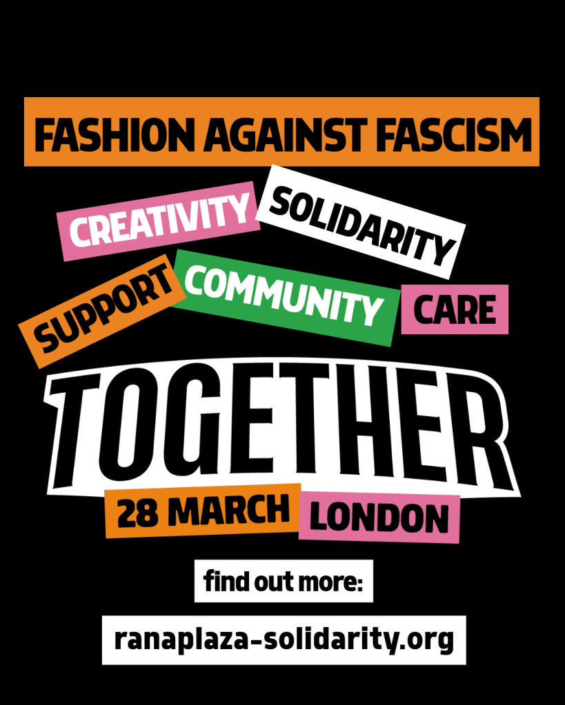 We oppose the far right because we know that the history of fashion in the UK is one of migration – from the Huguenots, to Jewish and Bangladeshi communities, to generation after generation of students, factory workers and designers from all round the world – migration built a global fashion capital. And this goes on today with migrant workers in Leicester being paid less than the minimum wage to produce high street fashion.