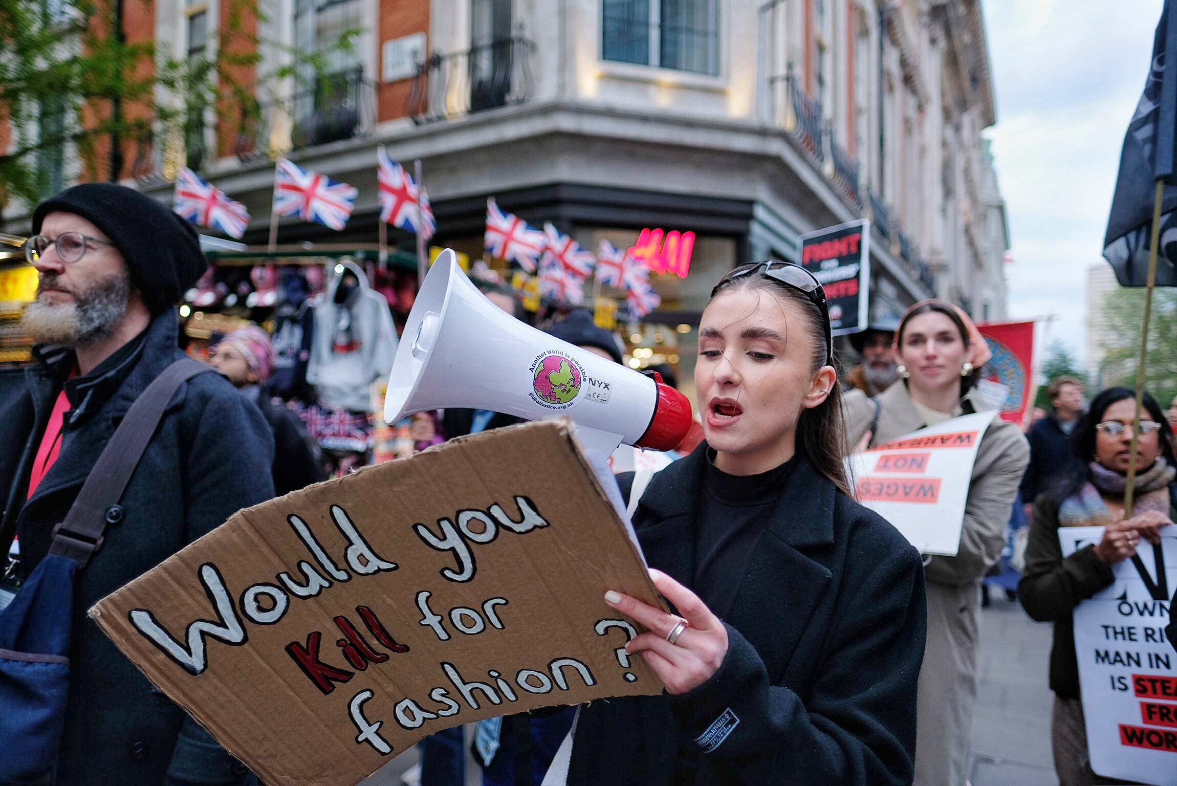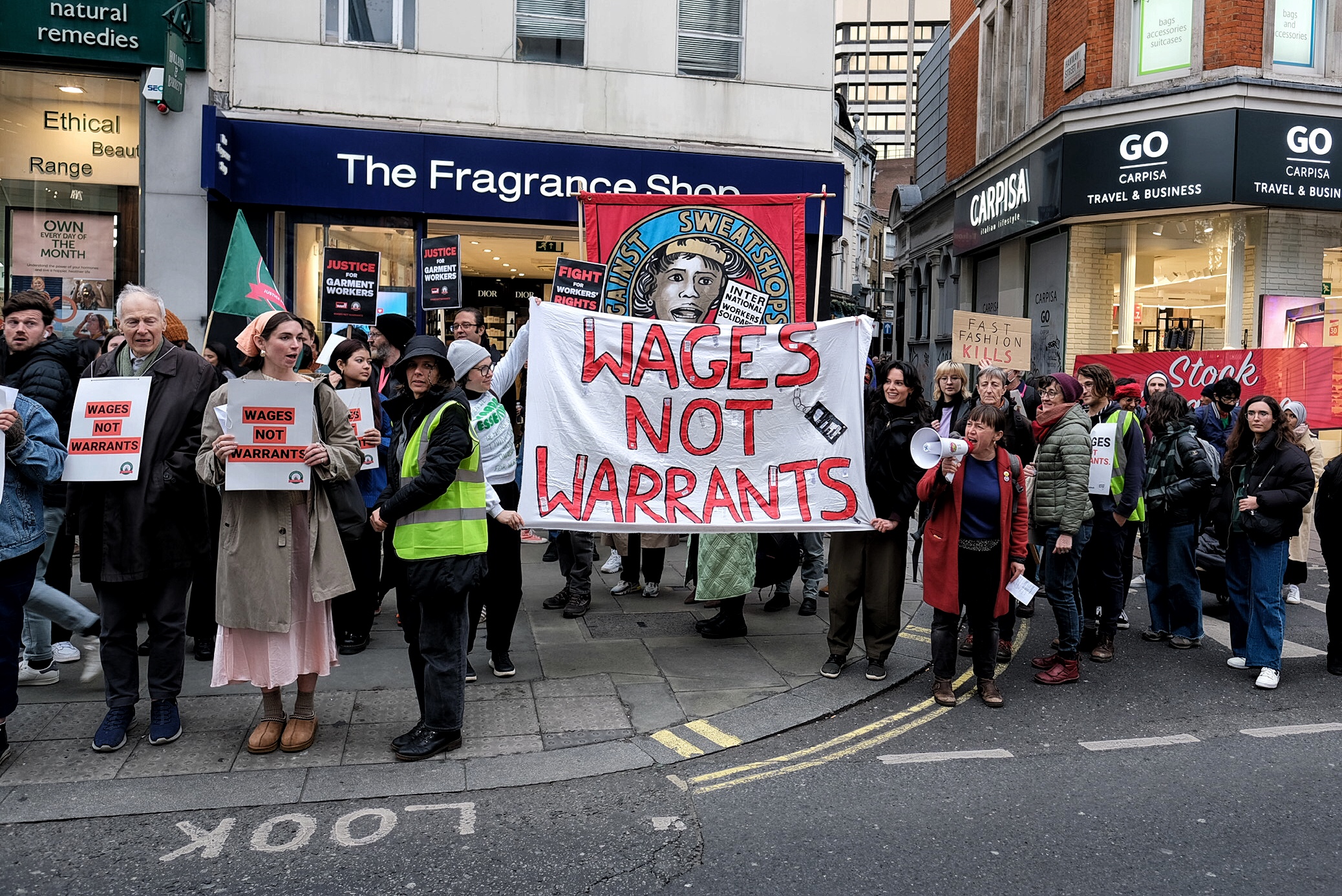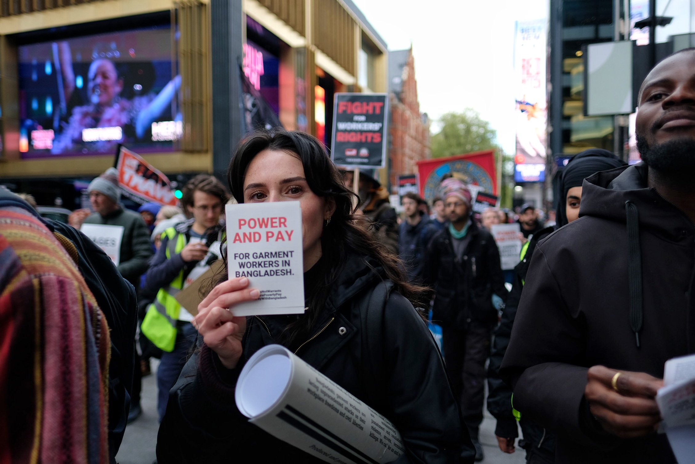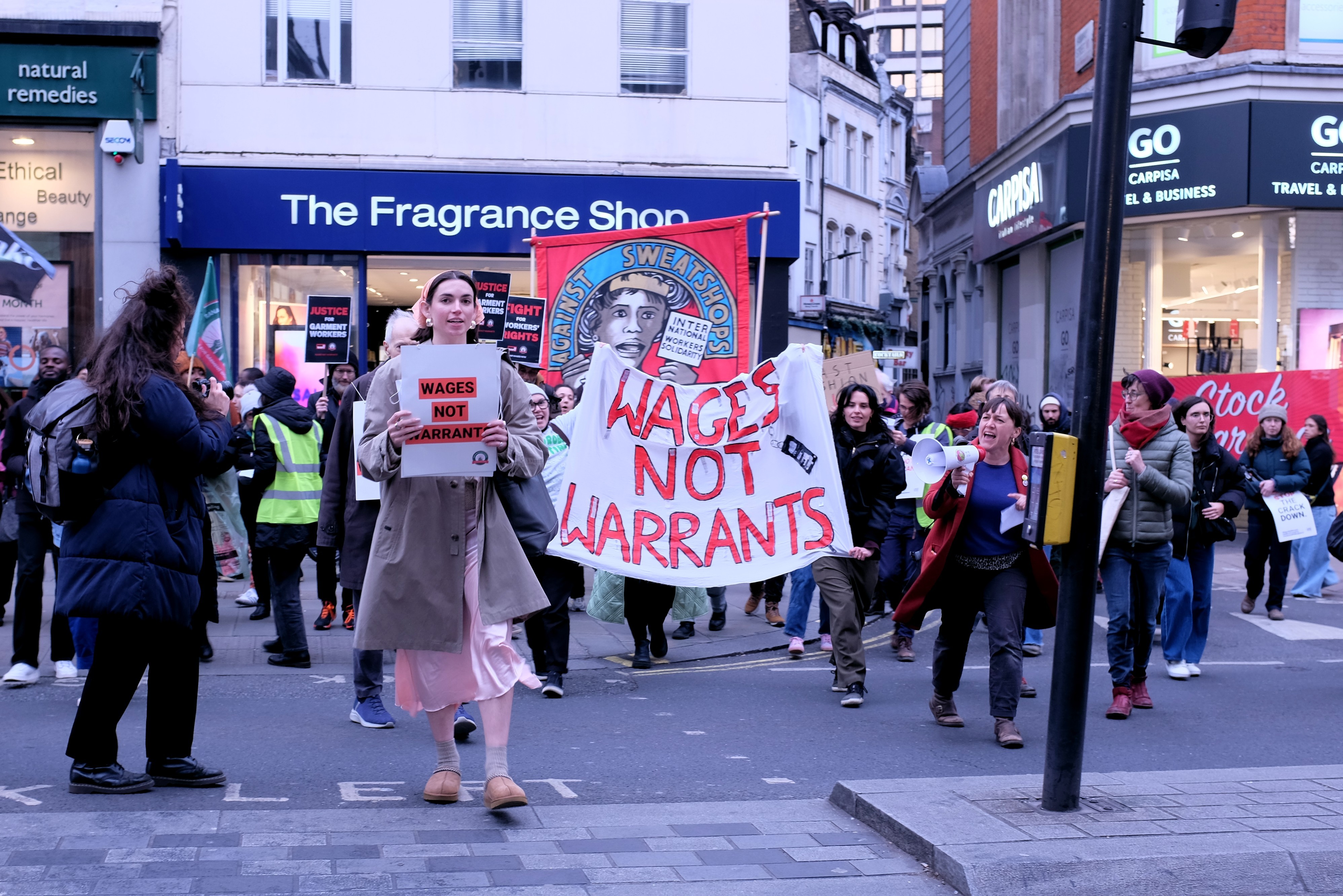 These photographs are shared under a Creative Commons CC BY-SA 4.0 licence. This means they can be shared but you must attribute them to the photographer Angela Christofilou aka @protests_photos. Please also link to Rana Plaza Solidarity Collective.