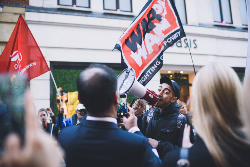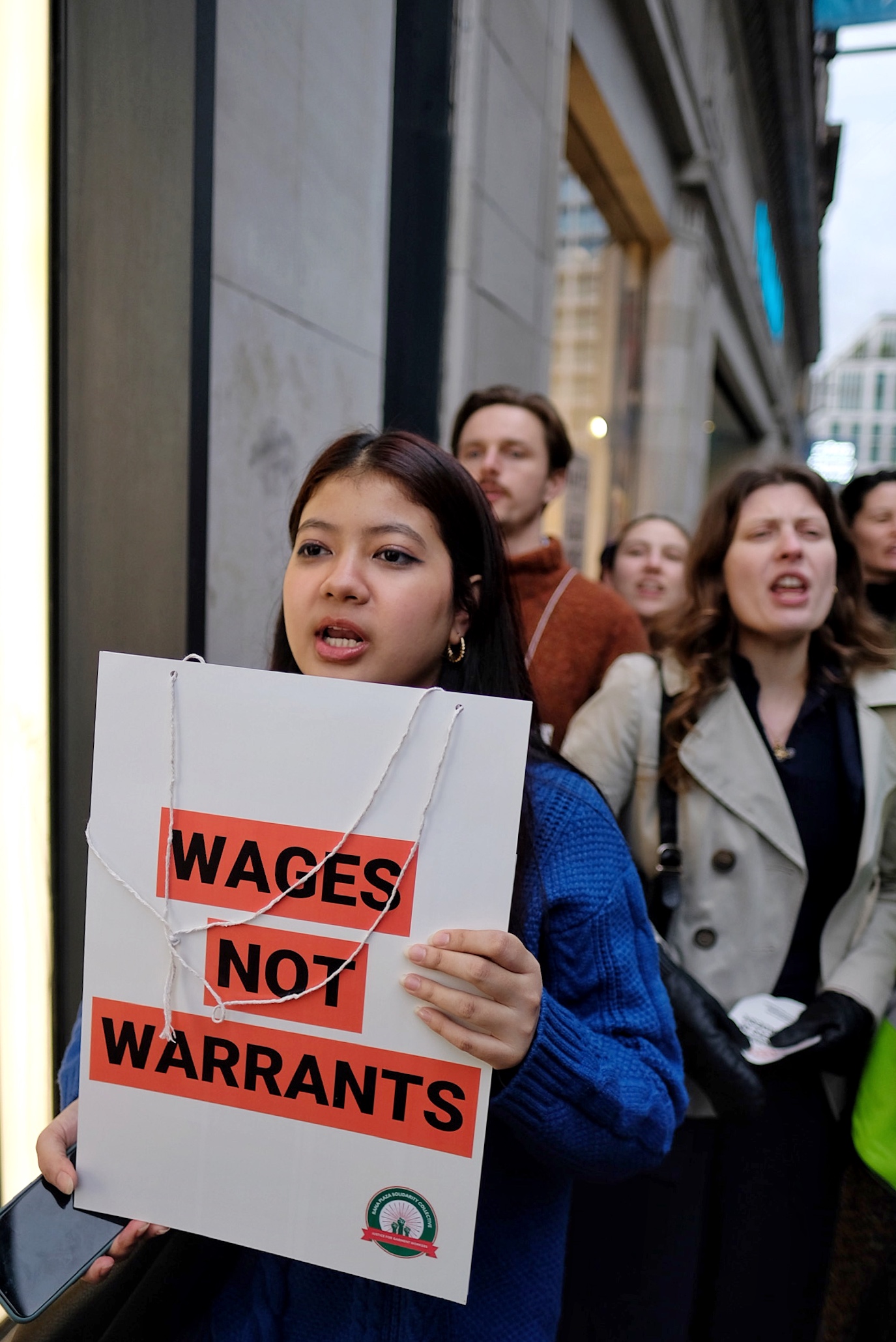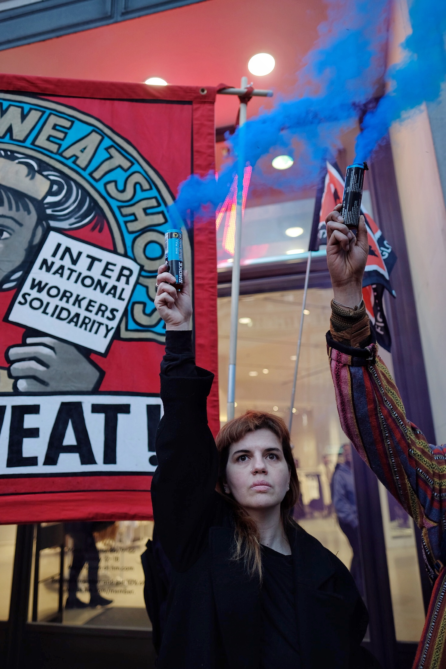These photographs are shared under a Creative Commons CC BY-SA 4.0 licence. This means they can be shared but you must attribute them to the photographer Angela Christofilou aka @protests_photos. Please also link to Rana Plaza Solidarity Collective.
